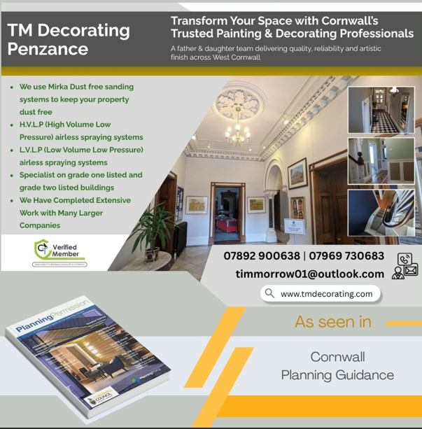 TM Decorating Penzance operates throughout the following post code areas: TR27, TR26, TR19, TR18, TR17, TR13, TR1